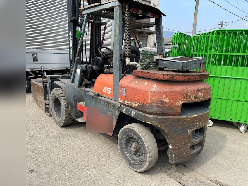 査定では稼働時間・エンジン状態・マスト・フォーク・タイヤの状態、電動式の場合はバッテリーの残存容量が主なポイントです。「稼働時間が多い」「タイヤが減っている」という状態でも、査定時に正直に教えてください。トヨタブランドの人気の高さから、状態が多少悪くても想定より高い評価になるケースがあります。