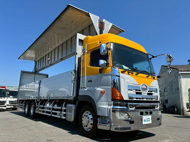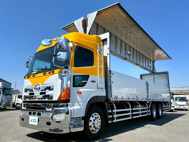 2201 QKG-FR1EXBJ H26 日野 プロフィア アルミウイング ワンオーナー ハイルーフ 3軸1デフ 総輪エアサス メーターあおり 1Mアオリ 永久磁石式リターダ 380馬力 プロシフト AT セミオートマ 10t 25t 大型 バン 箱車